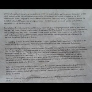 The sonata of course needs a real musician to hold it together and find the orchestral colours with which it was obviously conceived.One could almost say that it is his fifth symphony such is the overall architectural conception of this monumental work.It was just such a performance we heard today from this young musician.Maybe lacking in the overall sweep and some of Brahms’s youthful romantic verve but there was a control of sound and colour and an overall architectural conception of the work that showed a quite remarkable musical maturity allied to an impressive technical prowess.All this he could do on a fine but limited Yamaha piano, so hats off indeed!